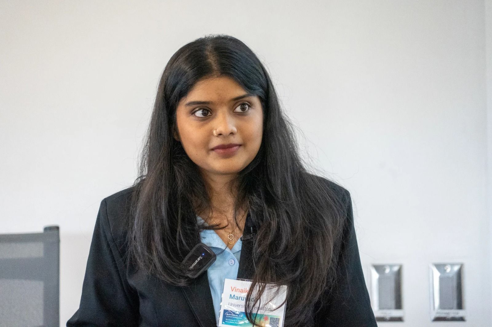 Data Analyst Vinaika presents research at Bayesialab conference, Boca Raton, FL, 2025